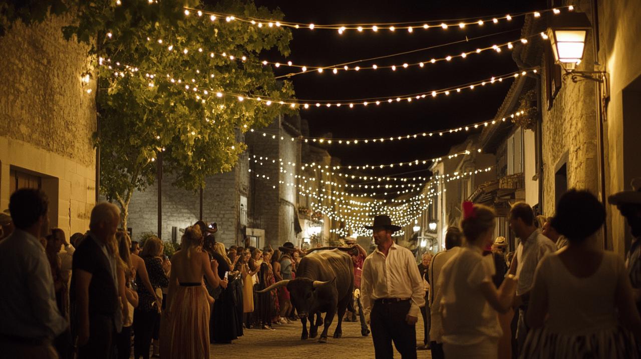 La mode camarguaise rayonne lors du traditionnel encierro nocturne de Caissargues, un événement authentique qui fait vibrer les passionnés de culture taurine. Cette célébration unique rassemble les amateurs dans une atmosphère chaleureuse et conviviale.